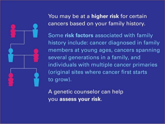 “Ask, ask, ask! Ask for genetic counseling and ask if genetic testing is needed. If you are positive, ask for treatment recommendations. Being positive for a genetic mutation is not a death sentence but an opportunity. You have options: increased surveillance, chemo-prevention, and surgery. You can be proactive and beat cancer before it even starts.”